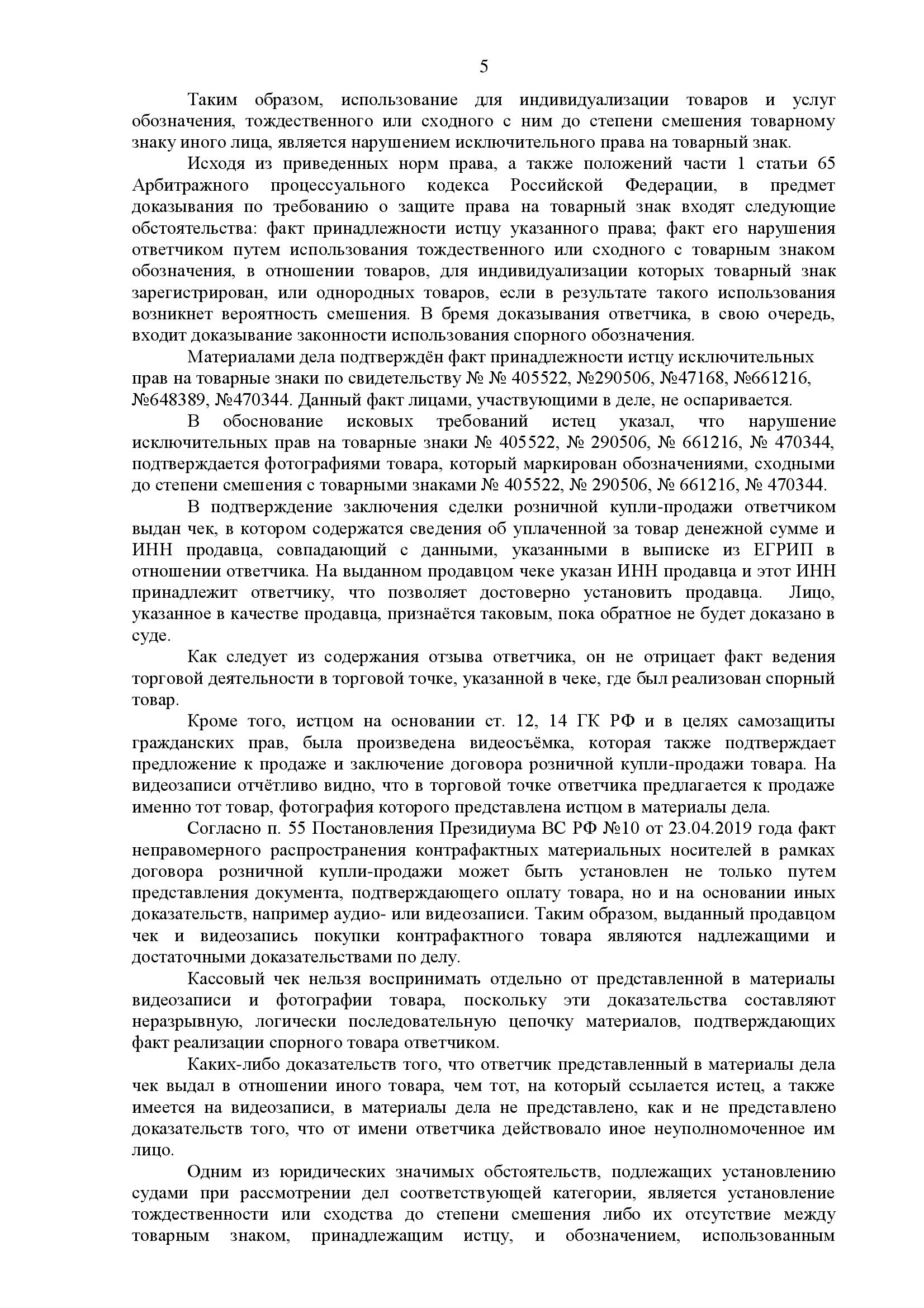 Защита настаивала на том, что три из четырёх товарных знаков фактически являются серией знаков одного правообладателя с общим доминирующим элементом, поэтому их одновременное использование на одном товаре должно рассматриваться как одно нарушение. Также ответчик указывал на несоразмерность заявленной компенсации, просил снизить её ниже минимального размера. Однако суд не усмотрел оснований для снижения ниже 10 000 руб., но применил принцип разумности и справедливости.