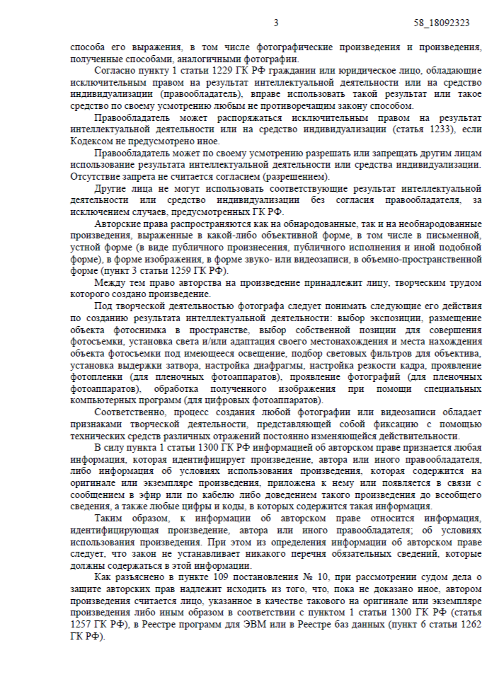 • Нарушение исключительных прав на фотографическое произведение