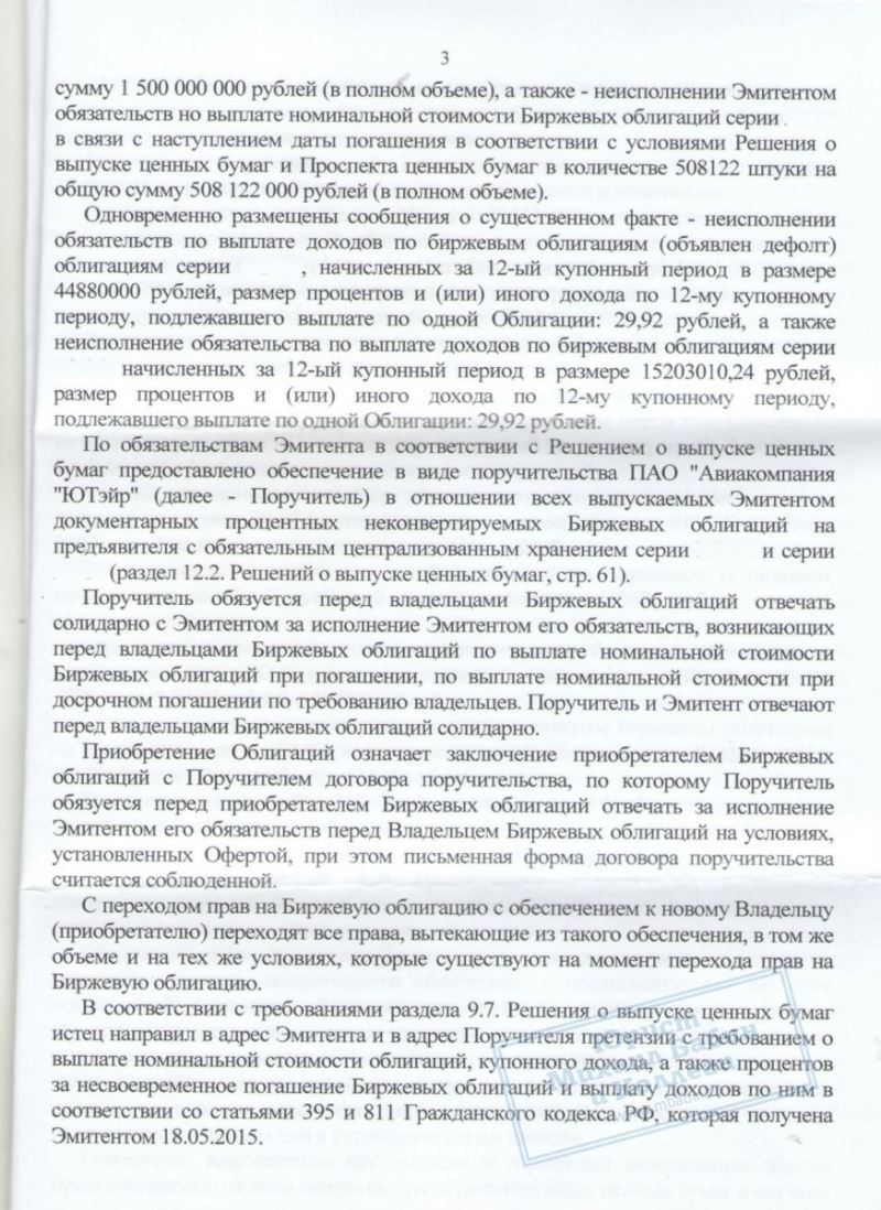Взыскали с "Авиакомпании ЮТэйр" стоимость облигаций